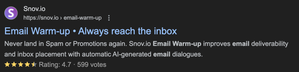 They have optimized their page title and meta with the keywords helping them rank among the first 5 results for the search term “email warmup”.